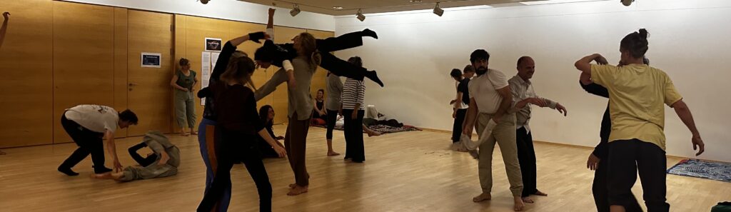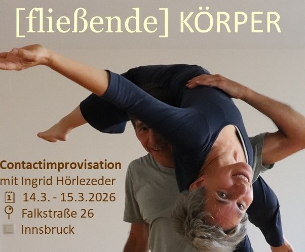 Im Kontakt mit Tanzpartner:innen erforschen wir verschiedene Qualitäten der Berührung. Wir spielen mit Gewicht geben und nehmen – Gewicht kann kurz in eine Richtung fließen, innehalten, umkehren und die Richtung ändern. Dabei entstehen Bewegungen, die nicht geplant sind, sondern aus dem Moment heraus wachsen – überraschend, leicht und lebendig.