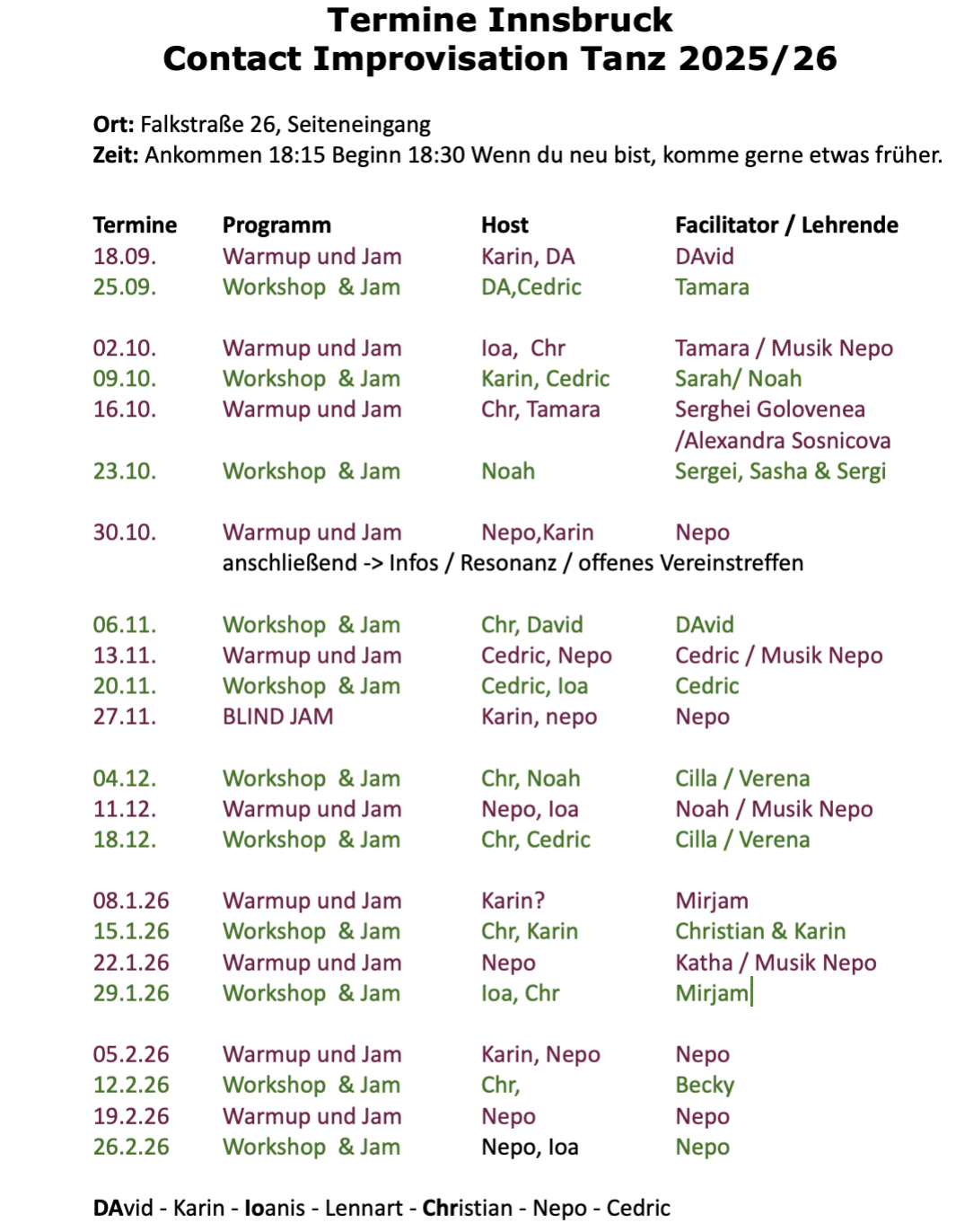 • 11.-13.12.2926  CI Workshop mit Ralf Jaroschinski
